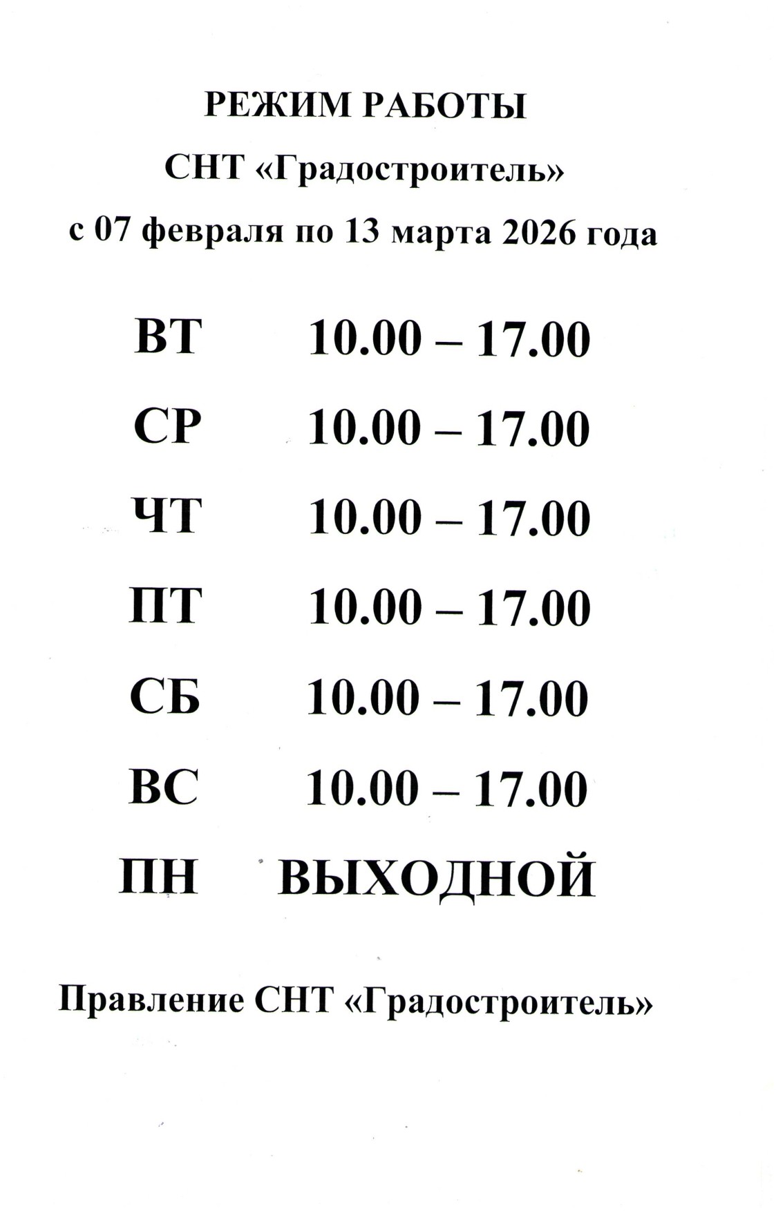 Режим работы Правления с 7 февраля по 13 марта 2026 года.